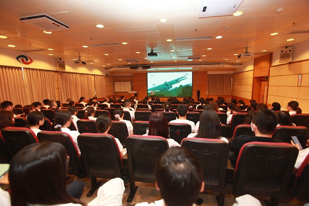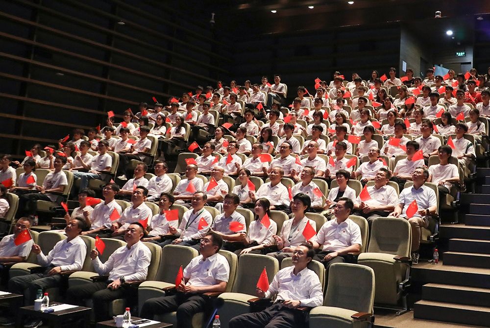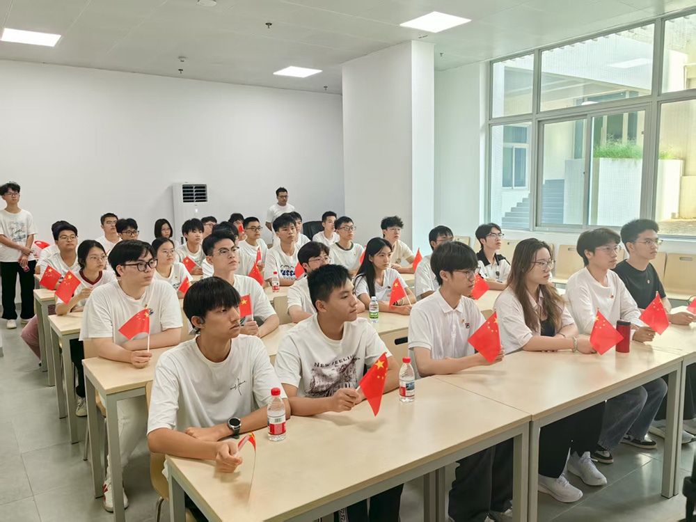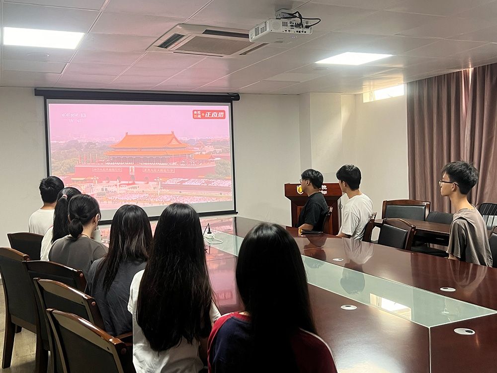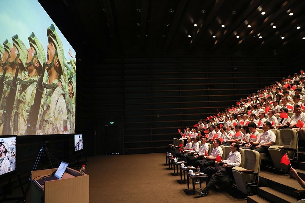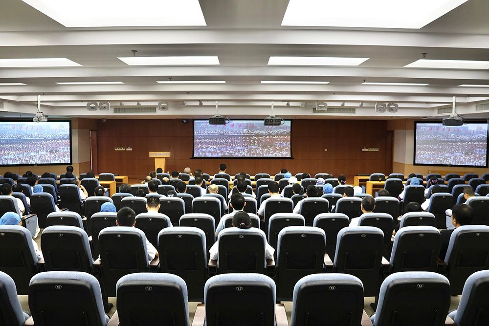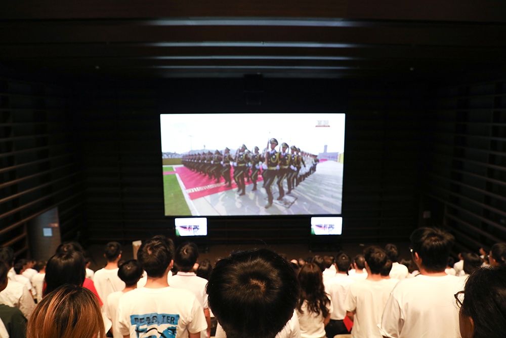 师生们全神贯注,庄严隆重的现场氛围透过屏幕感染着每一个人。80响礼炮拉开大会序幕,师生们肃立并齐声高唱中华人民共和国国歌,激昂的旋律在报告厅内回荡。整场直播让在场师生心潮澎湃、倍感自豪,同时也深切感受到国家今日之繁荣昌盛的来之不易。