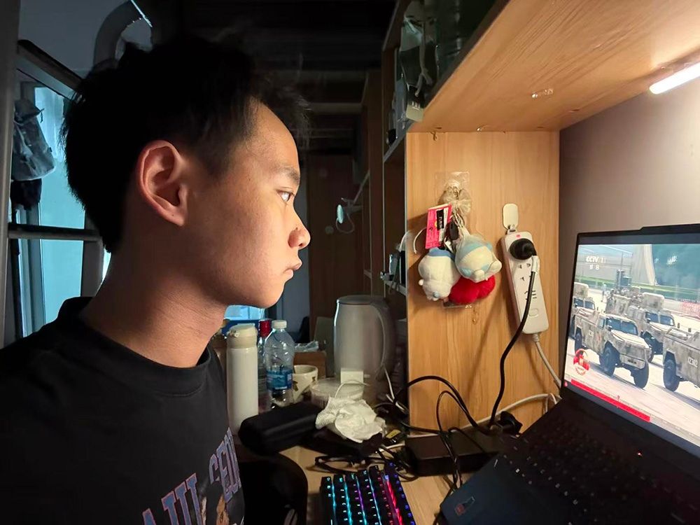 商学院 蔡创能:今日,我怀着些许期待的心情,全程观看了纪念中国人民抗日战争暨世界反法西斯战争胜利80周年阅兵仪式。当国旗冉冉升起,万人同声高唱国歌的那一刻,一种强烈的凝聚力深深打动了我,心中涌起难以言表的震撼。