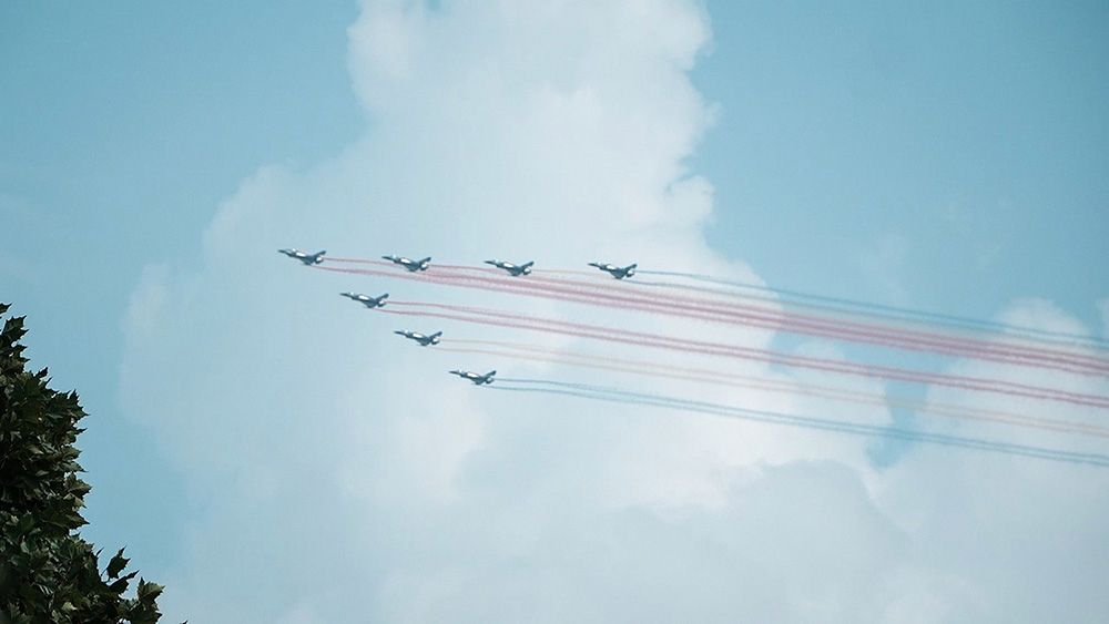 阅兵式正式开始,各方队迈着铿锵有力、整齐划一的步伐行进。军人们目光如炬,身姿挺拔,每一个动作都精准无误,展现出极高的训练水平和纪律性。装备方阵隆隆驶过,新型武器装备在阳光下闪耀着冷峻的光芒,彰显了国家日益强大的国防实力。