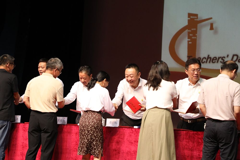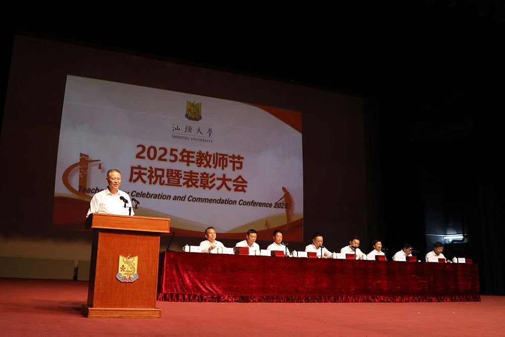 唐锐代表学校党委向学校全体教师和教育工作者致以诚挚的节日问候和衷心的感谢,并分享了三点思考:第一,要深刻认识教师队伍建设是教育强国建设最重要的基础工作;第二,要以中国特有的教育家精神铸魂强师;第三,要打造高素质专业化汕大教师队伍。唐锐指出,打造高素质专业化的汕大教师队伍,一要构建师德师风涵养体系,筑牢教师思想根基;二要构建教师发展支撑体系,支持人才脱颖而出;三要构建教师科学评价体系,促进教师分类发展;四要构建教师激励支持体系,激发干事创业活力。他寄语全校教师和教育工作者,要以教育家精神为自觉追求,更好肩负起培养担当民族复兴大任时代新人的崇高使命,为加快建设教育强省、奋力谱写中国式现代化汕大新篇章作出新的更大贡献!