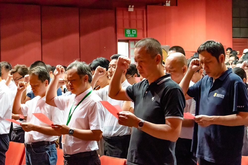下午3时,大会在雄壮的国歌声中拉开序幕。“我志愿成为一名光荣的人民教师,忠诚党的教育事业,遵守教育法律法规,传承弘扬教育家精神……”郝志峰带领全体教职工进行宣誓,以进一步加强师德师风建设,增强教师的责任感、使命感和荣誉感。