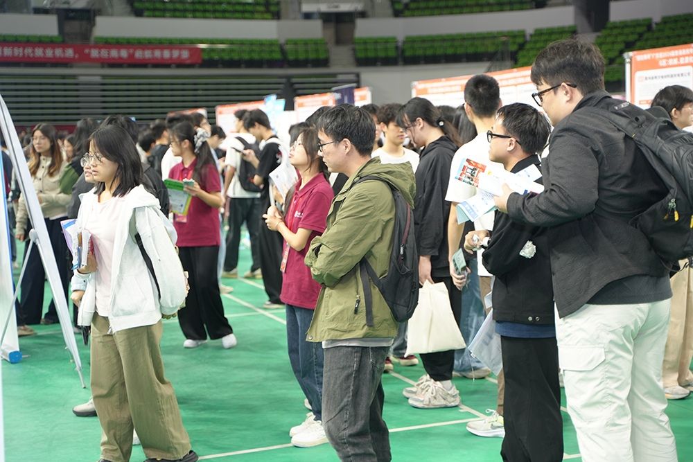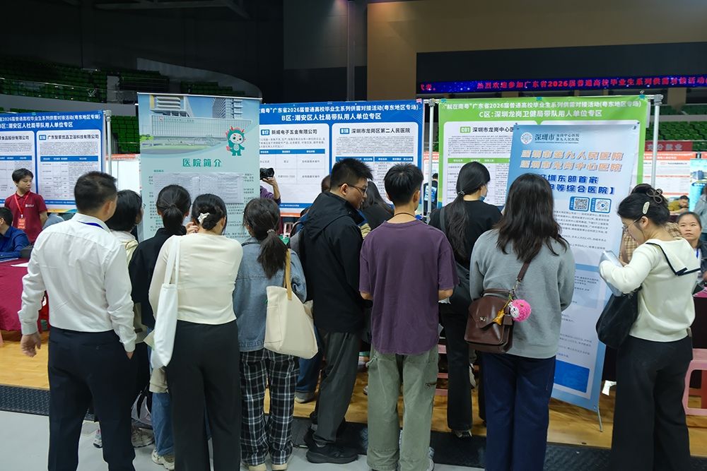 11月14日,由广东省教育厅主办、外网天堂承办的“就在南粤”广东省2026届普通高校毕业生系列供需对接活动(粤东地区专场)在外网天堂桑浦山校区新体育园举办。