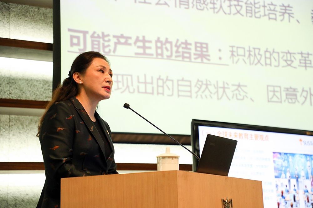 姜虹从“人工智能如何赋能未来教育”这一问题引入,立足全球教育发展趋势,通过丰富生动的案例,深入剖析人工智能时代未来教育的核心内涵,指出AI赋能教育的本质是“技术逻辑与教育规律的深度融合”。她对比了AI赋能教育与传统教育,介绍了国内外AI赋能教育的政策与实践成果,提出AI赋能未来教育的变革路径、创新理念、探索方向,剖析了其所面临的挑战并分享了对于人工智能与教育创新的冷思考,探讨了人工智能如何打造面向四个未来的教育体系。