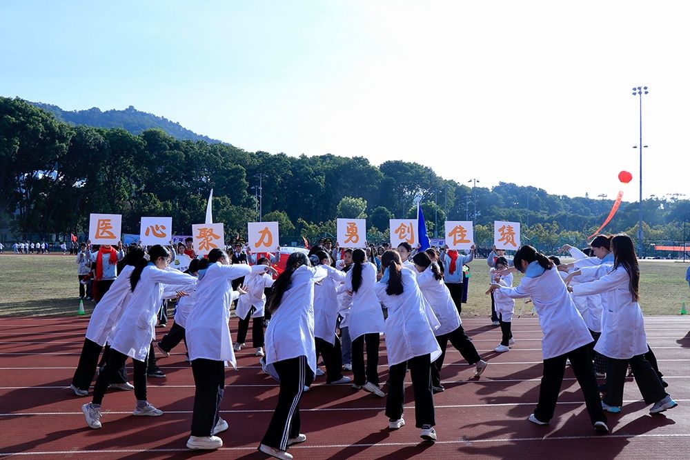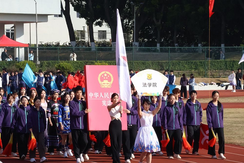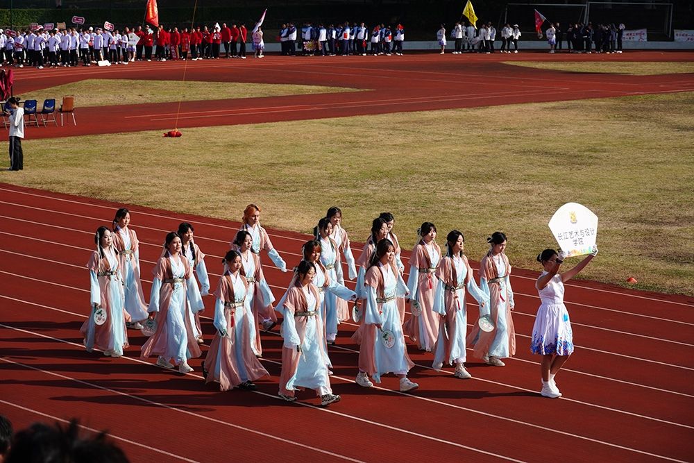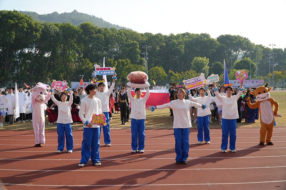 激昂的《运动员进行曲》奏响,由裁判员、运动员组成的各个方阵队伍依次入场。队员们身着特色服装,迈着铿锵步伐踏过主席台,创意姿态与响亮口号交织,既展现各队伍独特风采,更彰显汕大人朝气蓬勃、拼搏奋进的精神底色。观众席上欢呼声与掌声此起彼伏,将现场氛围不断推向高潮。