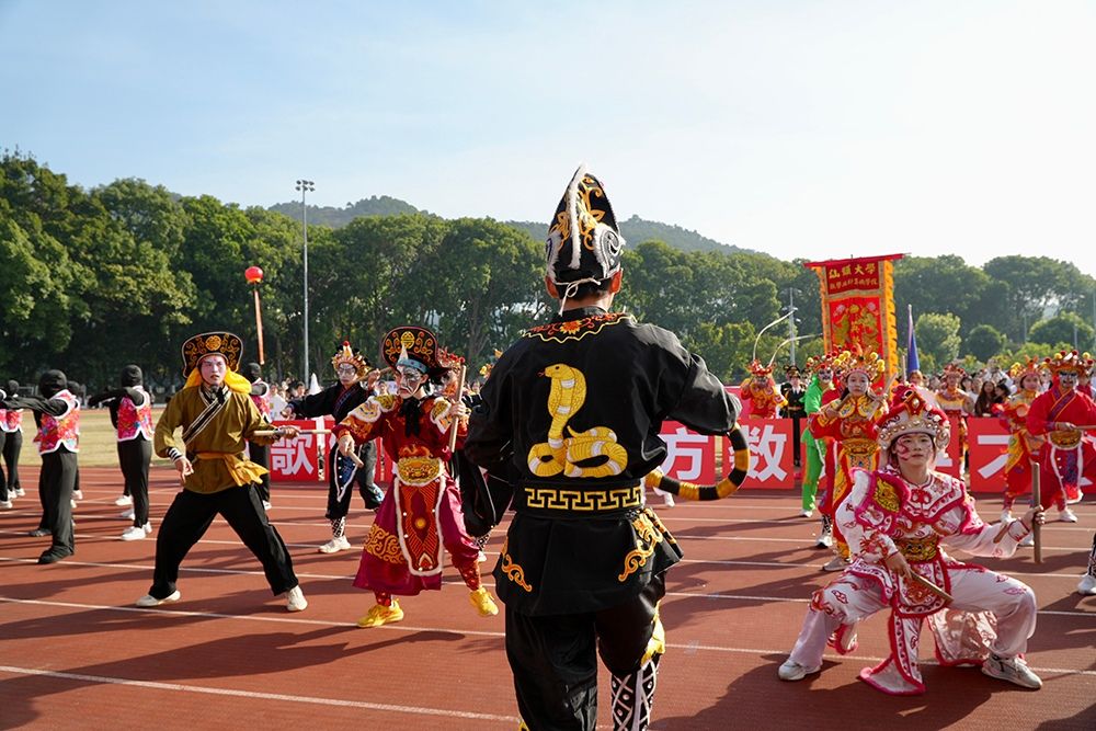 庄严的升国旗仪式后,郝志峰为本届校运会致开幕辞。他指出,田径运动会是学校体育育人成果的集中检阅,更是师生团结协作、勇攀高峰的精神展台。他肯定了过去一年学校体育工作的亮眼成绩,寄语全体师生以运动为媒释放身心活力,在奔跑与拼搏中感受运动魅力,将赛场激情转化为成长动力。