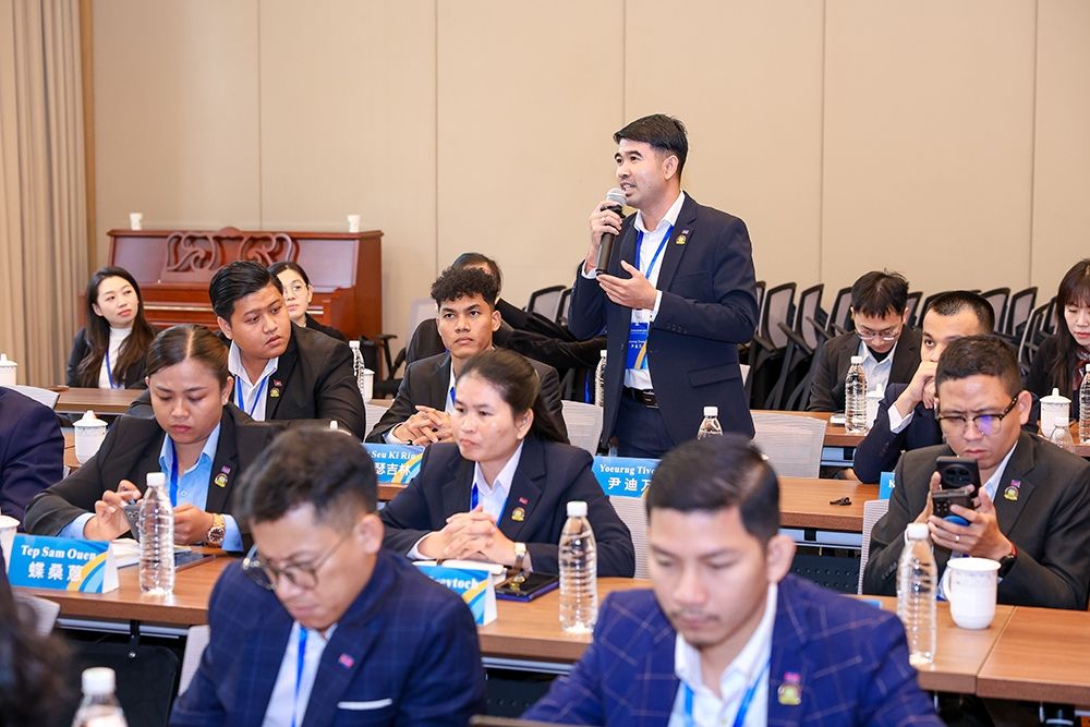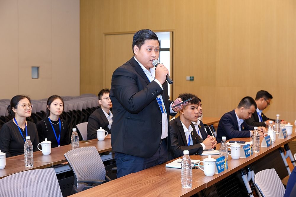 在互动环节中,柬埔寨青年代表踊跃提问,就中柬经贸合作、青年创业、可持续发展等话题与梁强展开热烈交流,现场气氛活跃。