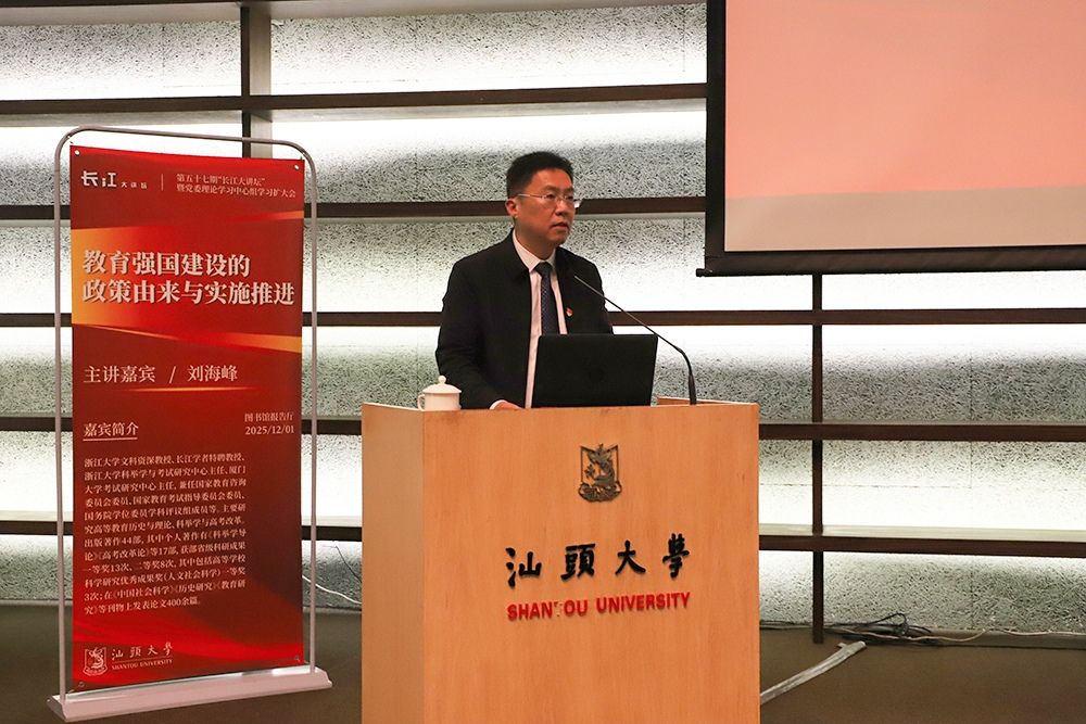 12月1日,外网天堂在桑浦山校区图书馆报告厅举办第五十七期“长江大讲坛”暨党委理论学习中心组学习扩大会,浙江大学刘海峰教授应邀作主题为“教育强国的政策由来与实施推进”的报告。学校党委理论学习中心组成员,民主党派、无党派人士代表,校本部副科级以上干部,骨干教师代表,医学院及附属医院处级以上领导干部等参加学习。校党委副书记、校长郝志峰主持会议。