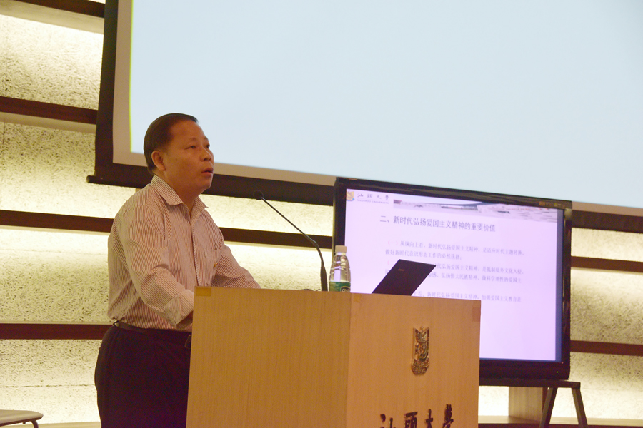 马克思主义学院沈海军同志围绕“弘扬新时代爱国主义精神”作主题发言。沈海军分析了爱国主义的三层涵义,指出新时代爱国主义精神的鲜明主题就是实现中华民族伟大复兴的中国梦。他从纵向、横向和深度三个方面论述了新时代弘扬爱国主义精神的重要价值,强调弘扬爱国主义精神要坚持爱国与爱党、爱社会主义,爱国主义与国际主义,感性表述和理性行动相统一的原则。他指出,弘扬爱国主义精神,要大力传承和弘扬中华民族的优秀传统文化;要重温中国共产党近百年的光辉历史,大力宣传中华人民共和国成立70年所取得的辉煌成就及其原因和意义;要自觉批判和抵制各种非马克思主义思潮;要立足岗位和专业,以实际行动爱国。