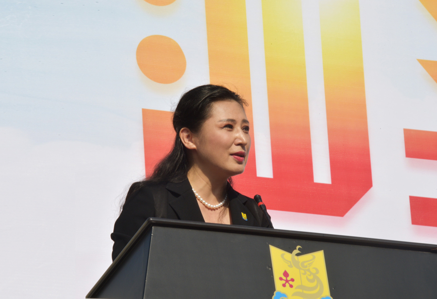 校党委书记、校长姜虹在典礼上作了题为《人生亘古旅途,前行无畏孤独》的致辞,与新生们分享如何过好大学生活。姜虹表示,从新生卢悦与父亲及妹妹三人徒步1300多公里到学校,完成最具仪式感的新生报到“打卡”中,切实感受到了“00后”一代的硬核和热血,希望新生们秉持“吾尝示之难,勇往无不敢”的青春锐气,在今后的学习生活中一往无前,大放光彩。姜虹借用古人的时间美学,希望新生们抓住十二时辰中最关键的三个黄金时辰:第一个时辰是“日出·卯时”,宜勤奋,忌懒惰;第二个时辰是“隅中·巳时”,宜专注,忌拖延;第三个时辰是“人定·亥时”,宜早睡,忌熬夜,真正感受“每一天的太阳都是新的。”姜虹与新生谈自己所理解的孤独,希望新生们既要适应一个人独处,学会享受孤独,在大学期间收获“我是谁,我要做什么,我想成为什么样的人”的明确答案,又不要为了盲目的克服孤独和获得认同感而轻易妥协,以致失去了韧性而与真理擦肩而过。姜虹寄语新生们,建立自我,奋力拼搏,追求无我,山高海阔,把人生理想融入国家和民族的事业中,把中华民族伟大复兴的历史责任担在肩上,活成自己喜欢的样子,活出当代青年该有的模样。