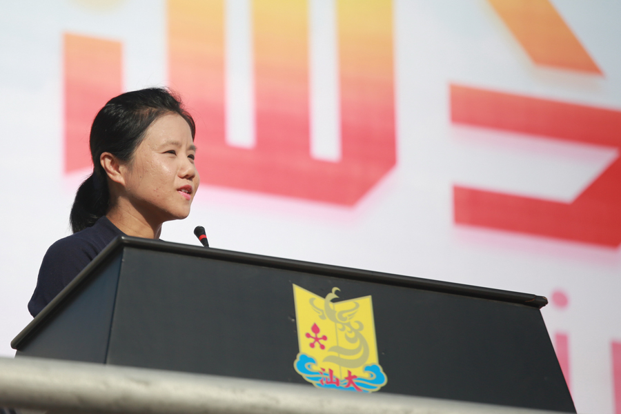 在开学典礼上,教师代表、2018-2019学年度卓越教学奖获得者、长江新闻与传播学院蔡秋彦副教授分享她在汕大的成长体会,寄语新生们要努力成为一个真正独立的人,寻找方向,让大学生活变得充实,让生命变得有意义;要尽量多阅读,尤其多阅读经典,活跃和开拓思维;要学会直面挫折,沉静分析根源,寻求师友帮助,获得勇气。作为教师,她希望能为新生们传道授业解惑,希望新生们成为一个具有高贵灵魂的有担当的人。
