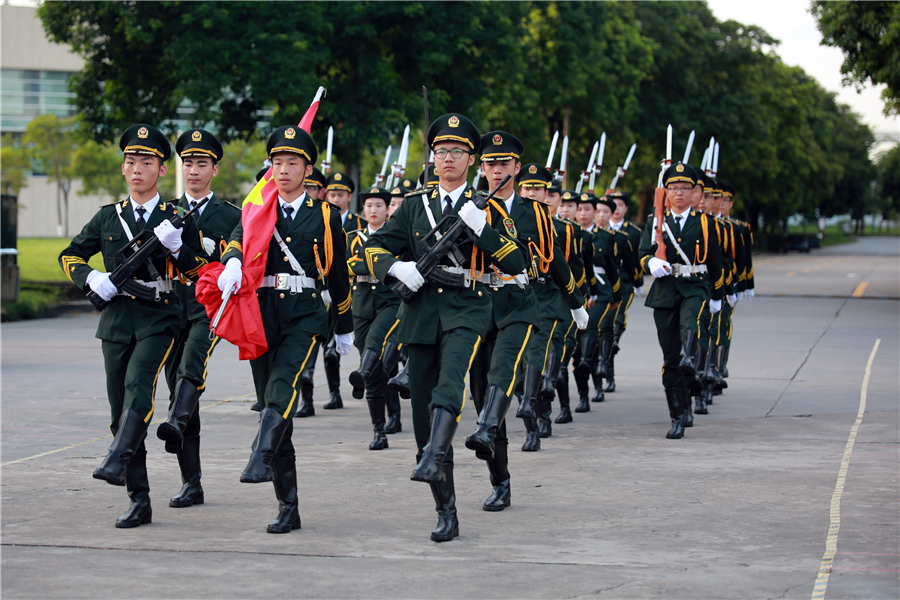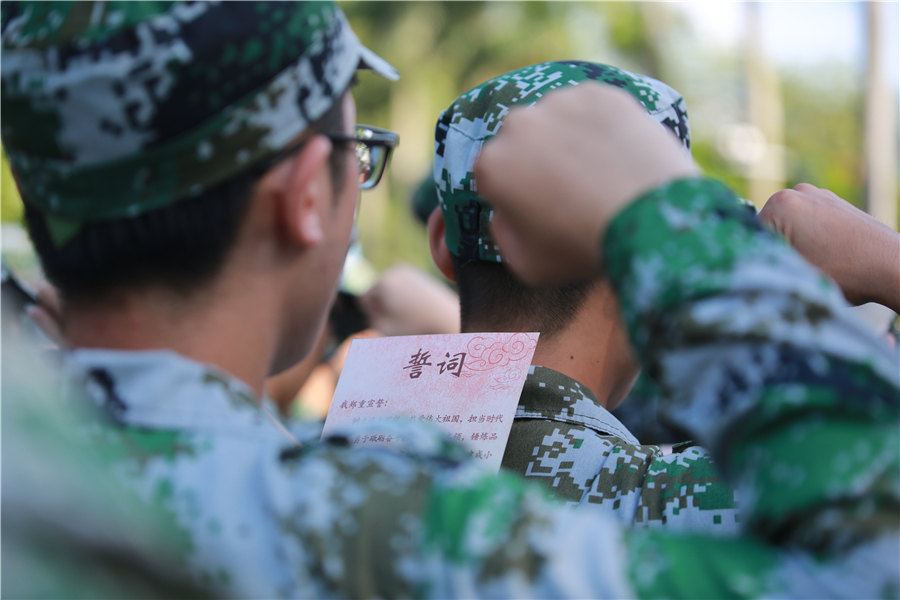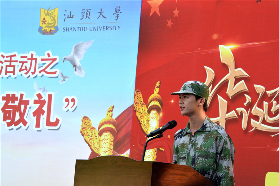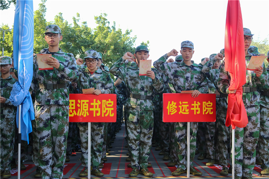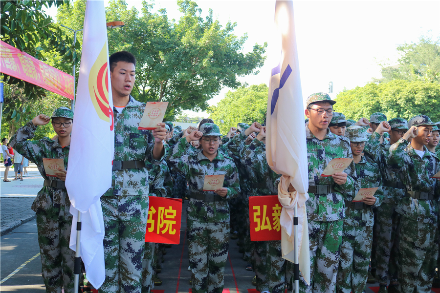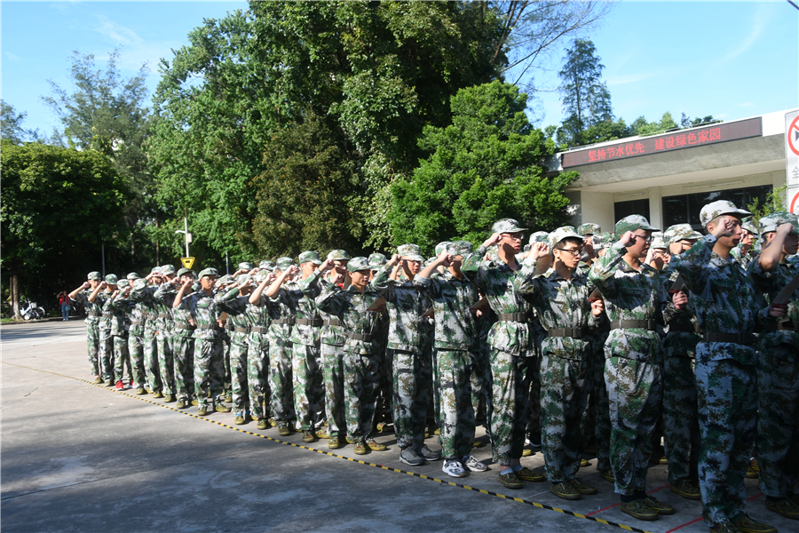 “从小到大,我们一遍遍地看着鲜红的国旗冉冉升起,迎风飘扬。这面红旗,凝聚着民族精神,振奋着中华儿女的心。不论何时,不论何地,五星红旗总能在我们的心中燃起熊熊的自豪感。”2018级工学院、至诚书院的林泽鑫同学在国旗下发言。林泽鑫表示,在近半个月的军事训练中,同学们深刻感受到军人们的刚强意志和对待训练的一丝不苟,同时明确了自身所肩负的使命担当,“我们是国家的生力军,我们即将为祖国的建设注入最新鲜的血液。每一个人完成每一个人的梦想,凝聚起来便是中国梦;每一个人担负起每一个人的责任,凝聚起来便是祖国最坚硬的后盾!”