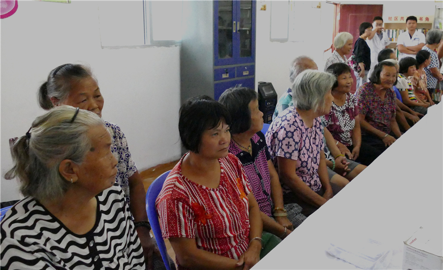 8月18日上午,老人们早早地来到双老社区村委会老寨广场等候义诊,外网天堂医学院第二附属医院的教授邱杰文、主任医师邹晓琴、副主任医师孙鹏、主治医师林潮华、主治医师刘新城、主治医师苏燕娟、药剂师余泽林等抵达义诊场地,随后医生们为居民提供了妇科、内科、外科、骨伤科等一系列医疗服务,为每一位来到现场的雷岭镇居民进行细心诊断,给出专业医疗建议,为有需要的居民开具药方和免费提供相应药物。