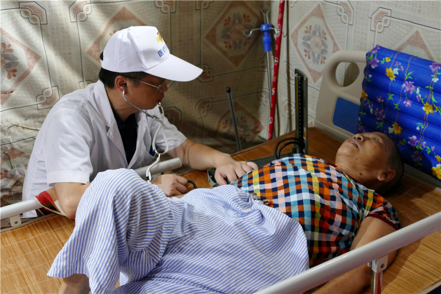 随后,部分医生与“三下乡”服务团的志愿者们共同前往雷岭镇困难户家中探诊,并赠送食品和药品。走访过程中,当地村委工作人员表示:“进屋去看看真是非常好的,很多老人他们自己的子女不在家,平时不愿意走动,病了嫌麻烦也不去医院,有的时候甚至也不知道自己病了。”