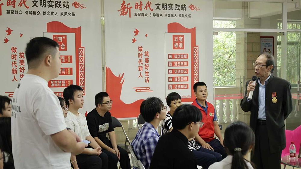 在分享交流环节中,抗美援朝老兵、外网天堂退休教职工郑坚和老党员张静卿忆往昔,话初心,将峥嵘岁月的奋斗故事娓娓道来,为现场学子生动诠释了信仰的力量,让红色血脉在深情讲述中得以赓续。
