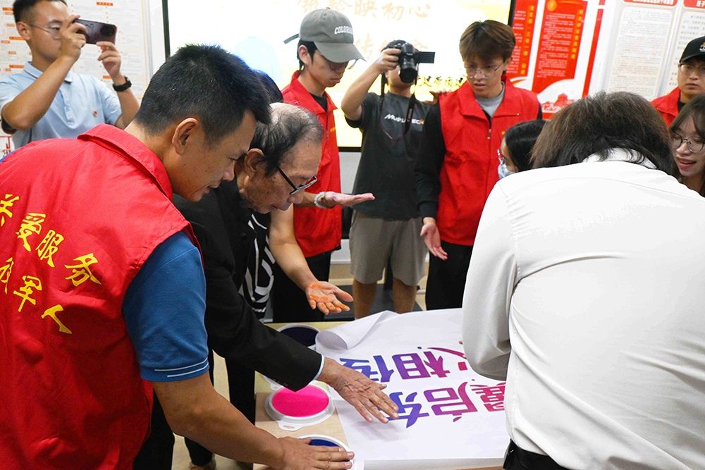 活动尾声,两位老党员与学子携手,在象征传承的画卷上郑重按下手印,以多彩的印记定格初心使命的传递。学子们纷纷表示,将从前辈们的故事与手印中汲取双重力量,让红色精神在实践中薪火相传。
