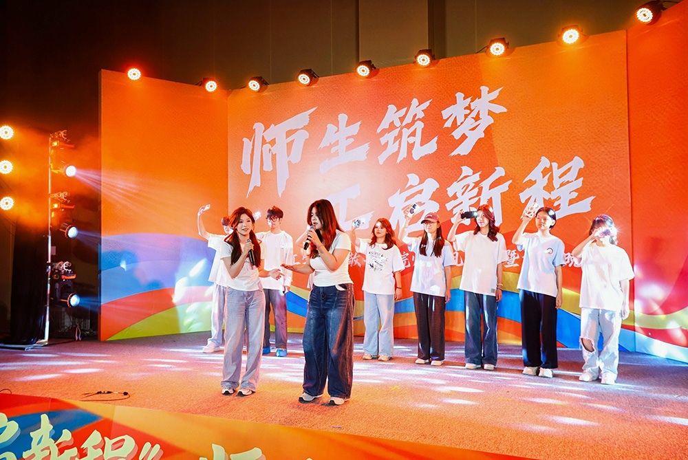 晚会由2025级新生曾茹瑜、刘晗主持,二人以生动的语言串联起四大特色篇章,带领现场师生沉浸式感受活动魅力。“萌新逐光”篇章中,2025级新生带来舞蹈、歌曲、小品等节目,虽略带青涩却满含热情,将初入校园的好奇与憧憬展现得淋漓尽致;“学长学姐”篇章里,高年级学子献上唱跳、乐器合奏等表演,用娴熟的技艺传递“传帮带”的温暖,为新生树立成长榜样;“师者聚力”篇章中,教职工代表登台演唱经典歌曲,以温情演绎诠释教育初心,让新生感受到师长的关怀与期许;“社团联动”环节,校吉他协会、街舞社友情助演,动感的节奏与炫酷的舞姿瞬间点燃现场氛围,成为晚会的一大亮点。