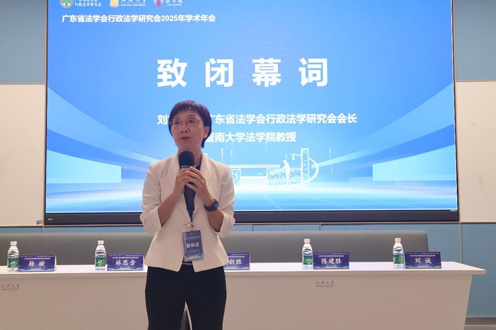 广东省法学会行政法学研究会副会长、暨南大学法学院邱新副教授主持会议闭幕式并做总结发言。他指出,与会嘉宾对多个前沿问题的深入讨论,为探索行政法的“中国模式”提供了丰富的理论参考。广东省法学会行政法学研究会会长、暨南大学法学院刘文静教授作闭幕致辞。