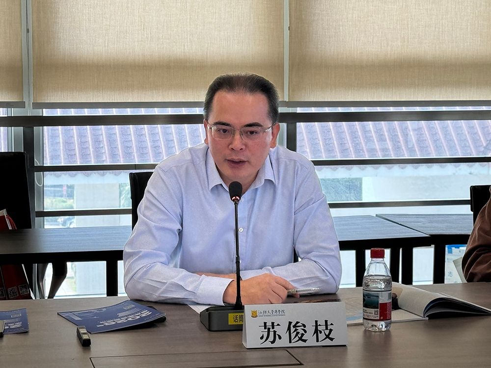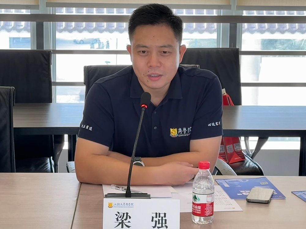 梁强围绕学院学科及专业建设成果、“新商科”人才培养模式和校企合作成效等方面进行细致介绍。他指出,近年来,学院聚焦国家战略和社会需求创新人才培养模式,打破传统专业教学边界,持续推进“人工智能与大数据+商科专业”课程变革,进一步提升学生跨学科交叉应用能力与综合竞争力,为行业发展提供人才保障。希望通过多方协同,进一步完善课程共建、实习实践、课题合作机制,在服务企业发展需求的同时,也为学生提供高质量的实践育人平台,实现“高校育人、企业用人、学生成长”的三方共赢。