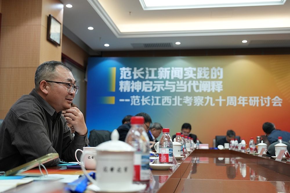 新华社研究院院长、党委书记刘刚认为范长江“一生传奇”,其西北之行、创建“青记”等具体实践,彰显了将个人命运融入民族命运的家国情怀与求真精神。在百年变局下,新闻界更需传承他“深入现场、向险而行”的职业理想,以文化自信筑牢传播根基,构建有影响力的国际传播体系。