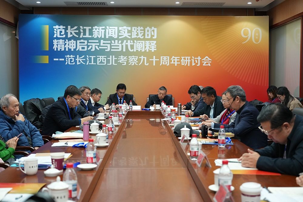 九位专家学者作主题发言,围绕范长江新闻实践的史实考订、精神内涵挖掘及价值重构和新闻学教学改革等议题做精彩分享。