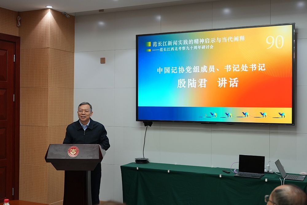 全国记协党组成员、书记处书记殷陆君在讲话中指出,新闻工作者要“以真实为生命,以现场为底线,以作品来立身,以做人来立德”,站在新的历史方位,需要多角度、全方位、深入学习范长江的新闻精神:一是守护真实、坚持真理,当年范长江徒步考察,记录真实与真情才能写出动人华章;二是不断创造、持续创新,范长江的作品与创办媒体实践一直贯穿创业、创造、创新理念,新时代新闻人要学习敢闯善为,开拓融合发展新事业,走好全媒体传播的长征路;三是作品立言、作人立身,向范长江学习筑根强基,做有文化、有风骨、有格调的新闻人,用精品力作引领时代;四是传承精神、面向未来,成为政治坚定、业务精湛、作风优良、党和人民信赖的新闻工作者。他倡议,凝聚高校与高校、高校与媒体机构等多方合作,深入开展“范长江研究”,深化理论阐释和实践传承,让长江精神在新时代绽放光彩。
