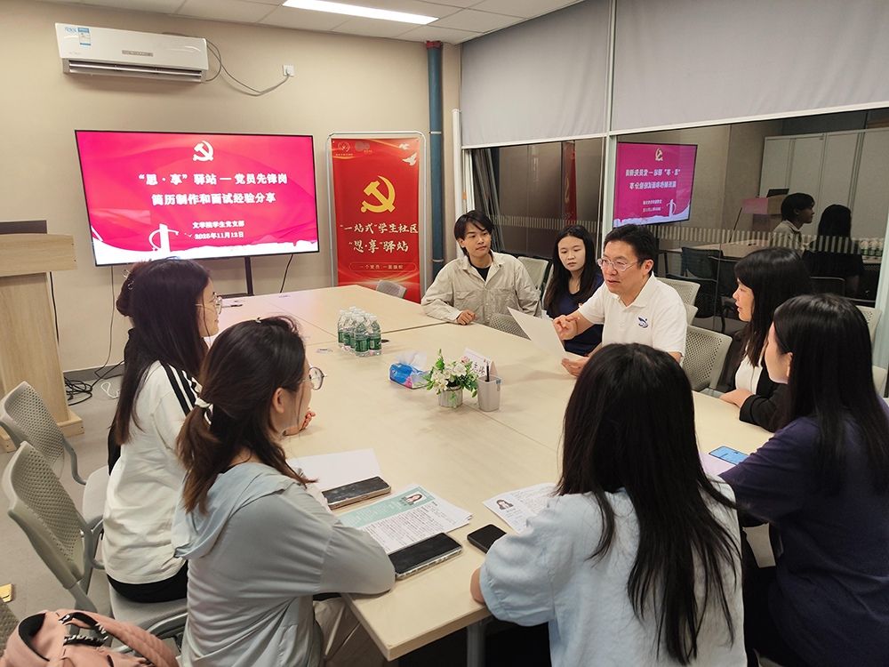 11月12日晚,文学院外文系学生党支部在思源书院党团活动室举办“党员先锋岗——简历制作与面试技巧分享”主题活动。校党委副书记、校长郝志峰现场与支部党员师生深入交流,为青年学子升学就业指路领航。