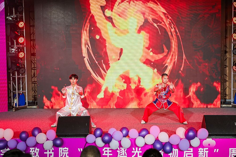 晚会以极具潮汕地域文化特色的民俗表演《英歌舞》开场,表演者们以刚劲的动作、铿锵的鼓点和磅礴的气势,瞬间点燃全场气氛。随后,歌手们深情演唱,舞者们活力四射,共同营造出热烈欢快的晚会氛围。T台秀节目中,模特们用时尚步伐和绰约身姿演绎潮流魅力,在璀璨灯光下呈现出一场惊艳的视觉盛宴。武术表演者拳脚生风,身形如竹,在刚劲有力的动作中彰显中华武术的独特魅力。话剧表演则通过演员们精湛的演技,呈现了一个有笑有泪的精彩故事,引领观众开启一段心灵探索之旅。现场掌声和欢呼声此起彼伏,将晚会气氛不断推向高潮。晚会最后,格致书院导生会全体成员齐声高歌《稻香》,共同展现青年一代心往一处聚、劲往一处使的凝聚力,传递跨越时光的温暖力量,接续书院薪火相传的精神传承,也为整场活动画上圆满句号。