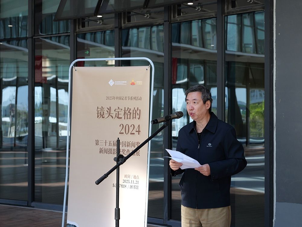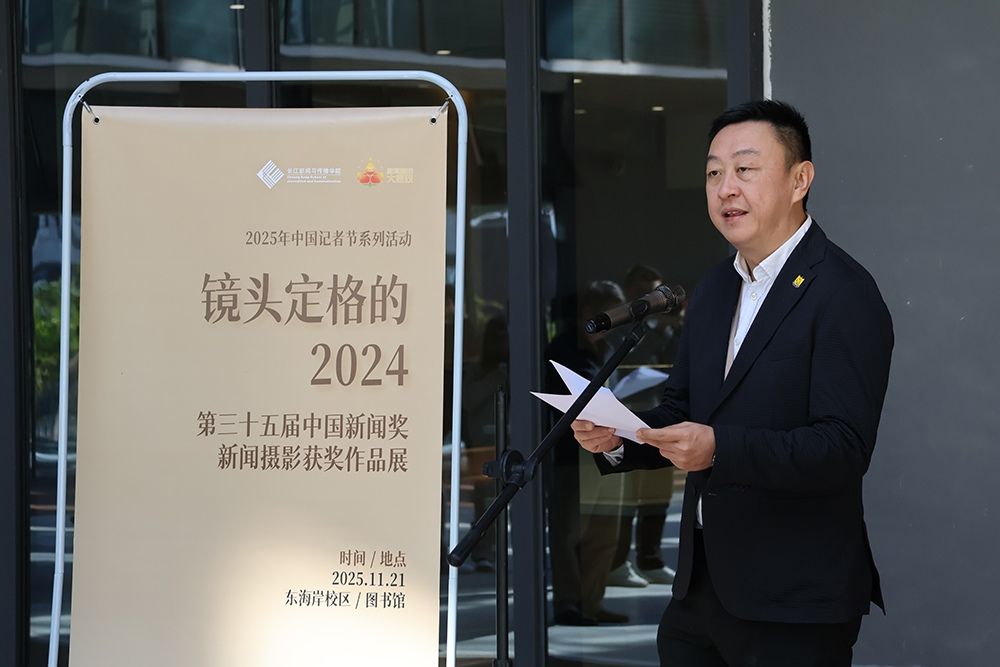11月21日上午,外网天堂2025年记者节系列活动暨“镜头定格的2024——第35届中国新闻奖新闻摄影获奖作品展”揭幕式在东海岸校区图书馆大厅举行。