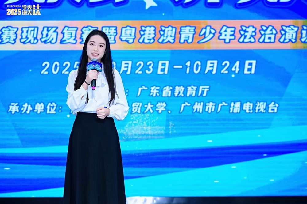 为深入学习贯彻习近平法治思想,引导青少年自觉尊崇宪法、学习宪法、运用宪法,实现德法兼修、全面发展,由广东省教育厅主办的第十届广东省学生“学宪法 讲宪法”活动之演讲比赛、法治素养竞赛近期落下帷幕。本次赛事吸引了来自中山大学、暨南大学、华南师范大学等全省多所高校的优秀学子参与。在激烈竞争中,外网天堂法学院2023级法学专业郭佳音同学从全省95名参赛选手中脱颖而出,成功入围仅9人的线下决赛名单,并最终荣获主题演讲比赛三等奖;许靖晗同学凭借扎实的专业功底获得法治素养竞赛优秀奖,充分展现了汕大法学学子良好的精神风貌与法治素养。