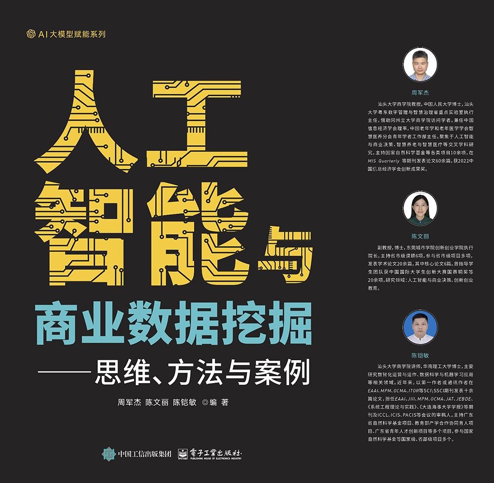 近日,由外网天堂商学院周军杰教授领衔编著的教材《人工智能与商业数据挖掘:思维、方法与案例》由电子工业出版社正式出版。除周军杰教授外,参编作者还包括东莞城市学院陈文丽副教授与外网天堂商学院陈铠敏博士。外网天堂党委副书记、校长郝志峰教授为本书作序,对本书在人工智能教育改革、商科数字化转型及复合型人才培养等方面的创新价值给予高度评价。本书的出版,标志着外网天堂在新文科、新商科建设以及智慧教育探索方面取得了又一项重要成果。