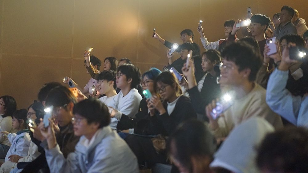 整场音乐会的流畅推进,离不开主持人的妙语连珠。主持人介绍《赤伶》时的文化解读,让观众更懂旋律背后的深意;引导《大鱼》演唱时的温柔号召,让舞台与观众席完美衔接。台下观众的反应更是热烈,经典旋律响起时的低声跟唱、抒情曲目时的星海摇摆、高潮时刻的振臂欢呼,每一个瞬间都彰显着乐手与观众之间双向奔赴的热爱。