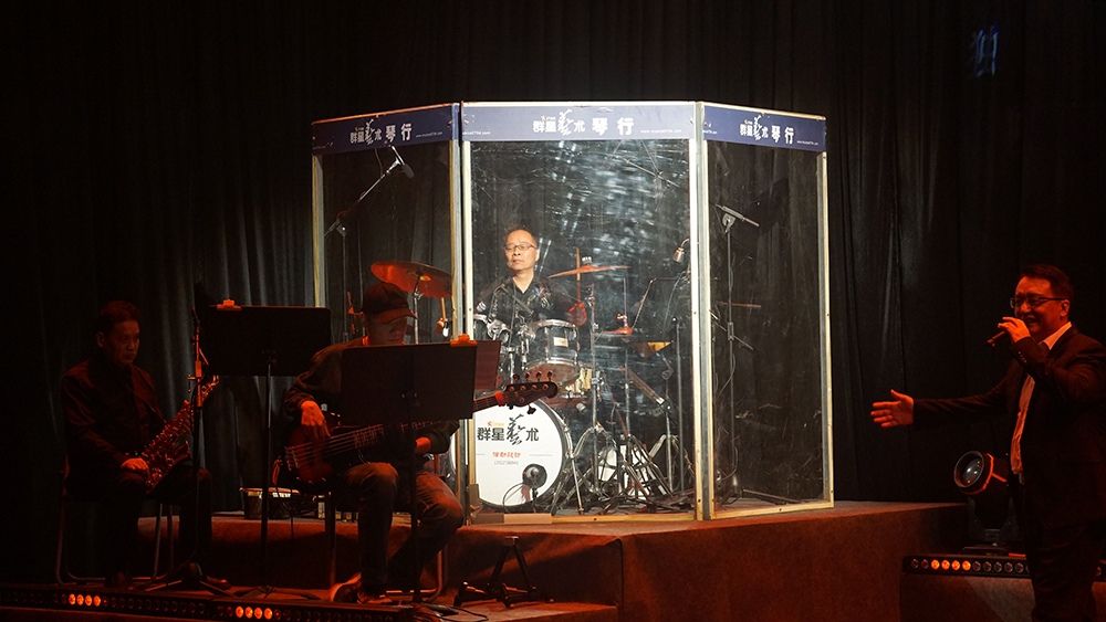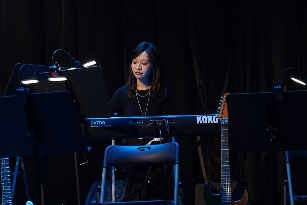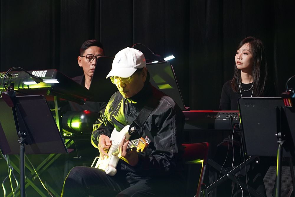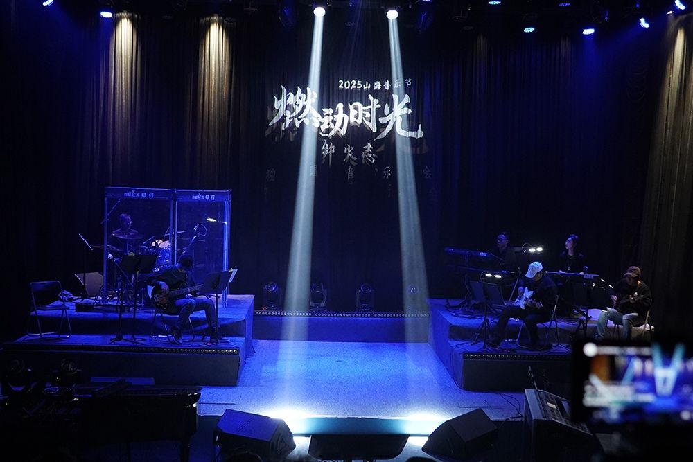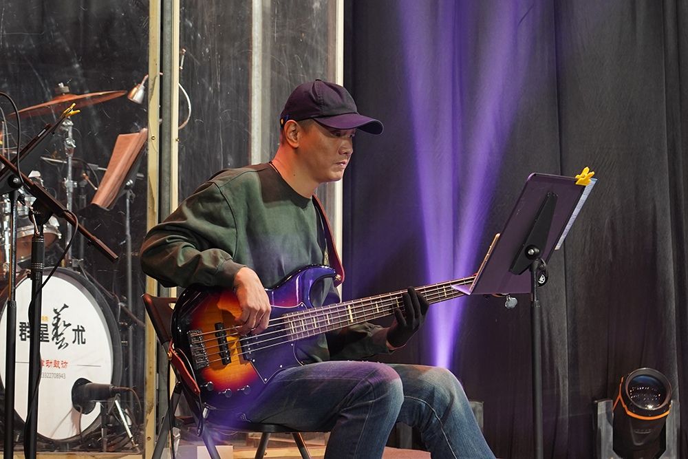 第二乐章是“仁心豪情”。《赤伶》开场,钟火志与钟子妍的戏腔与流行碰撞,郑毅蓁、陈珮琪、欧阳晓东的伴奏为这段跨界演绎注入细腻张力;《花妖》中,刘雨声老师的二胡如泣如诉,将刀郎笔下的故事拉得悠长婉转;《阿爸说》的潮语温情里,三位伴奏的和弦层层递进;《精忠报国》激昂旋律响起,全场跟着钟火志的嗓音齐声高唱,爱国豪情满溢。《大鱼》的空灵收尾中,钟子妍的歌声与丽可乐队的伴奏交织,台下手机星海随节奏轻轻摇摆,瞬间将现场拉入悠远意境。