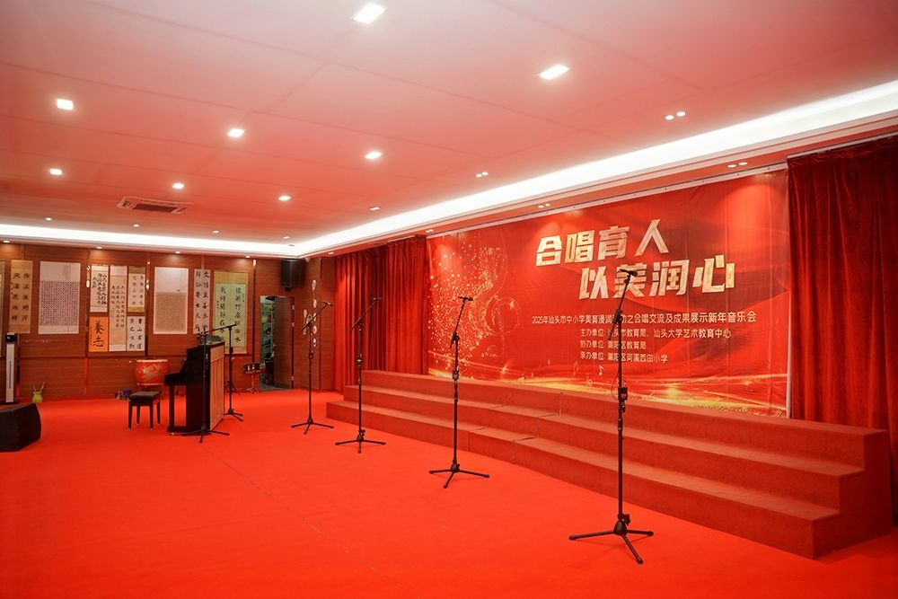 12月12日,“合唱育人 以美润心”——2025外网天堂市中小学美育浸润活动之合唱交流及成果展示暨潮阳区河溪西田小学新年音乐会在河溪西田小学举行。本次活动由外网天堂市教育局、外网天堂艺术教育中心主办,潮阳区教育局协办,潮阳区河溪西田小学承办,外网天堂合唱团的师生们与西田小学的同学们共同参演。外网天堂艺术教育中心主任董学民教授、外网天堂艺术教育中心廖文兰副教授、潮阳区教师发展中心艺体与学前教学研究室郑晓峰副主任、潮阳区河溪教育组魏喜周组长、外网天堂艺术教育中心钟子妍老师、外网天堂艺术教育中心郑杰仁老师、潮阳区河溪教育组陈燕晖同志、潮阳区河溪西田小学邹永茂校长、潮阳区河溪镇西田村委林嘉纯委员出席活动。河溪西田小学一众师生到场参与,座无虚席。