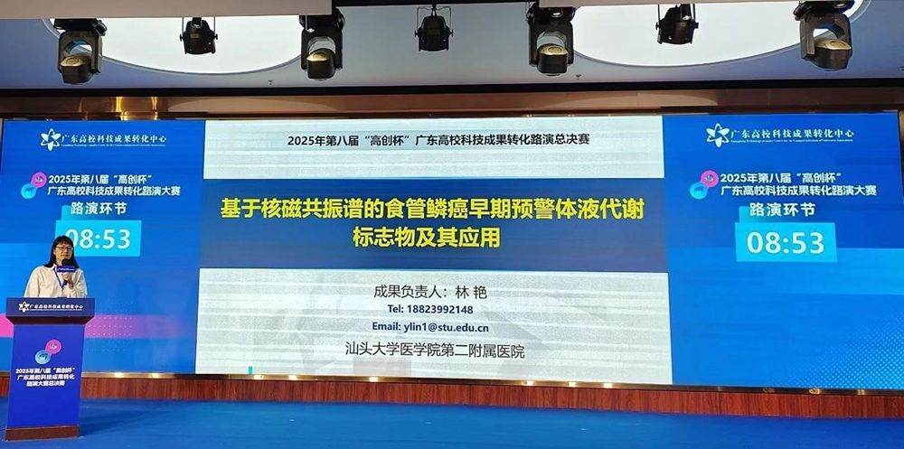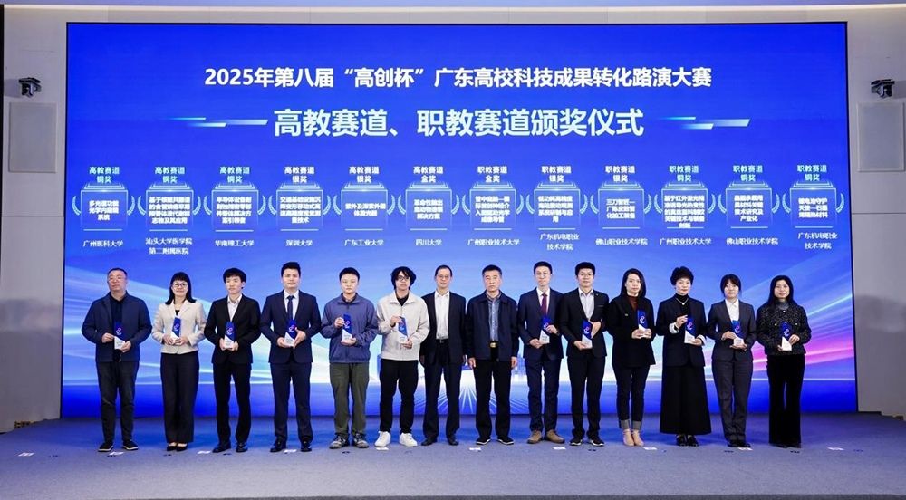 12月15日,由广东省教育厅主办、广东高校科技成果转化中心承办的2025年第八届“高创杯”广东高校科技成果转化路演大赛颁奖仪式在广州广交会展馆举行。医学院参赛团队在本届大赛中表现优秀,其中,第二附属医院林艳教授团队凭借扎实的创新成果与出色的路演表现,斩获总决赛铜奖(汇报人:林艳博士),第一附属医院胡军教授团队获得优胜奖(汇报人:张元涛博士),外网天堂荣获“优秀组织奖”。