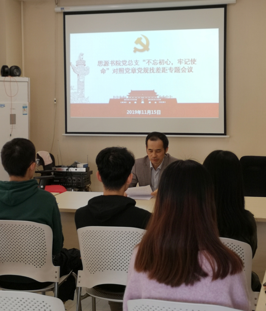 根据“不忘初心、牢记使命”主题教育的部署安排,思源书院党总支于11月15日下午在思源书院5楼会议室召开对照党章党规找差距专题会扩大会议。思源书院党总支全体委员、各支部代表参加了会议。
