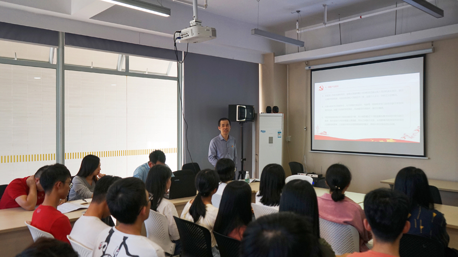 随后,陈楚群书记作题为《学好党史国史,牢记初心使命,增强大学生党员身份认同感》的主题教育党课。陈楚群谈到党的十八大以来,以习近平同志为核心的党中央高度重视历史、特别是党史和国史。习近平总书记强调,学习党史、国史,是坚持和发展中国特色社会主义、把党和国家各项事业继续推向前进的必修课。这门功课不仅必修,而且必须修好。98年的中国共产党史、70年的新中国史,是中国共产党为中国人民谋幸福、为中华民族谋复兴的奋斗史。党的历史、新中国的历史,是我们党、国家和民族的宝贵精神财富。这是一座巨大的精神“富矿”,我们应该深入挖掘这个“富矿”,从中吸取精神力量,增强坚守初心使命的思想和行动自觉。同时他还结合了主题教育的专题调研,及时了解到思源书院大学生党员身份认同感的现状,发现存在问题,分析了原因,对于下来如何进一步加强思源书院党的建设,特别是加强对学生党员的教育引导,增强大学生党员身份认同感有了更深入的思考和收获,提出了解决对策。