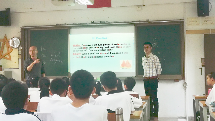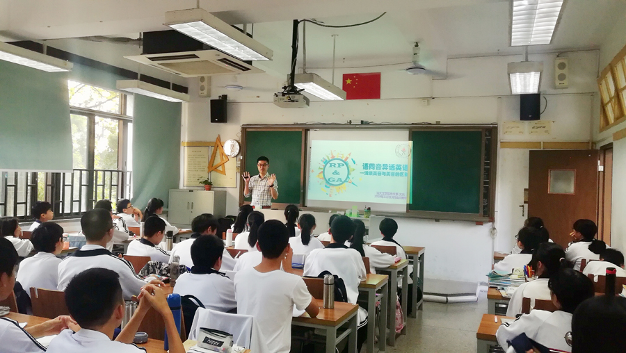 11月11日下午,文学院外语系教工党支部文兵、刘劲飞和孙金峰等老师以送讲座(课)入汕大附中附小的形式,开展“不忘初心、牢记使命”主题教育系列活动。此次为系列讲座第二场,文兵和刘劲飞老师以“语同音异话英语——浅谈英音与美音的区别”为主题,为附中初二学生作了精彩的演讲。