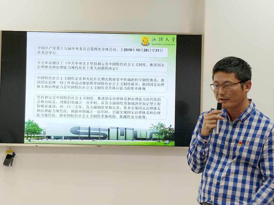 11月8日下午,商学院党总支“不忘初心、牢记使命”主题教育专题党课暨党员教育学习活动在文南三楼学术研讨室举行。商学院党总支书记邹志波同志讲授专题党课。商学院全体党员、入党积极分子和部分非党员老师参加了学习。