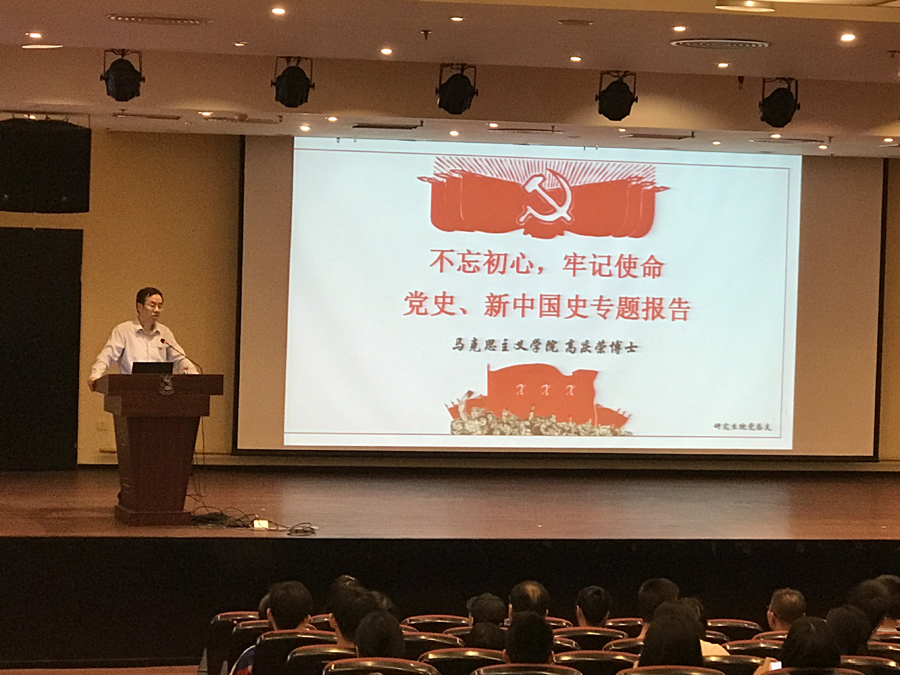 为组织全体研究生党员,把学习党史、新中国史与学习贯彻习近平新时代中国特色社会主义思想结合起来,不断增强各党支部和广大党员守初心、担使命的思想和行动自觉。按照学校党委主题教育实施方案要求,11月7日,研究生院党总支邀请马克思主义学院高庆荣博士在科学报告厅作“不忘初心,砥砺前行”主题教育专题报告。报告会由院党总支书记王建华主持,全体研究生党员共330余人参加了专题报告会。
