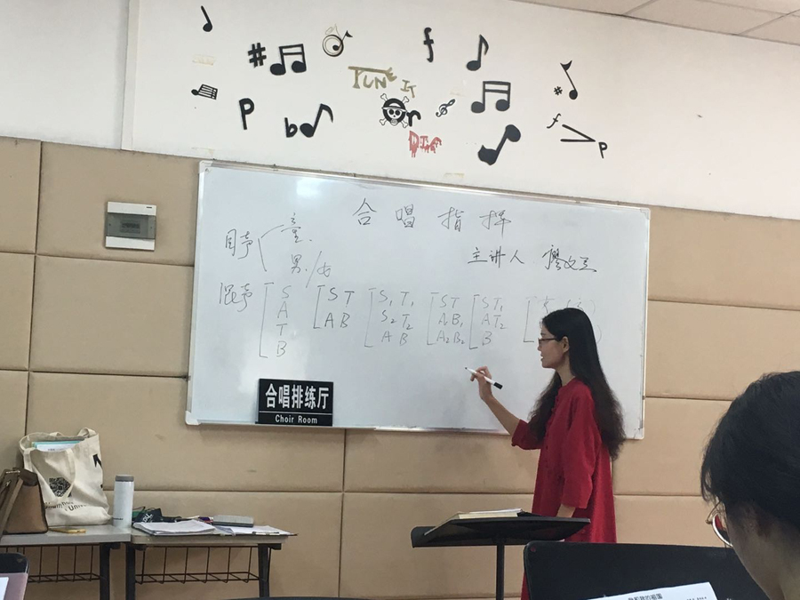 从如何建立组织一支合唱队伍,到合唱指挥的方法,廖文兰老师都向大家进行了详细的介绍,并亲身示范、教学。