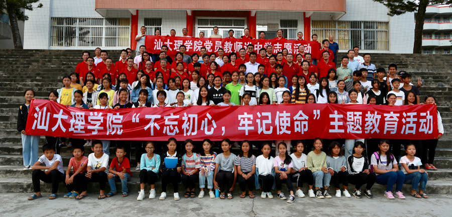 10月26日,由理学院党总支书记林锦香和院长章跃陵带队,学院42名教师党员赶赴潮南区雷岭镇革命老区开展了以“不忘初心、牢记使命”为主题的志愿活动。老师们首先赶赴“红场”,在红场中学林茂发校长的陪同下,追忆了88年前发生在老区的革命故事,对那段艰苦卓绝的红色岁月有了深入了解,深刻体会到革命先烈“为了什么而牺牲,为了谁而牺牲”的革命信念。先烈们的牺牲换来如今美好的生活,但那段并不遥远的历史告诉我们共产党员的初心永远都是为了人民。在这样的感情下,老师们向先烈致敬,并在“革命烈士纪念碑”下重温了入党誓词。