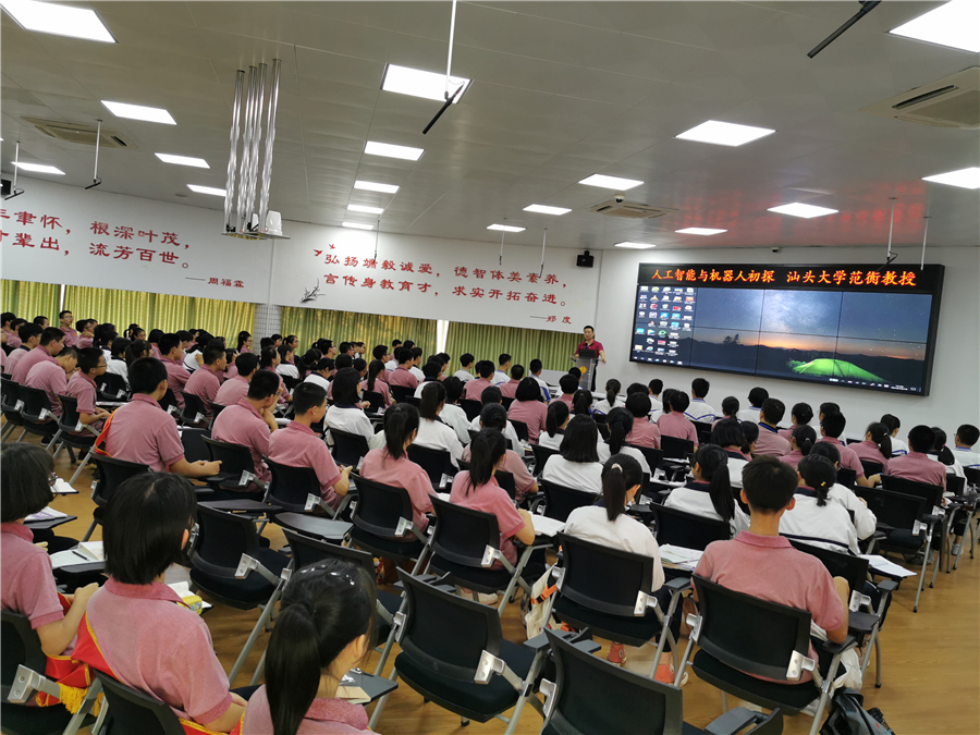 首先聿怀中学校长邱文荣为全体党员同志介绍了聿怀中学杰出校友-“共和国勋章”获得者、“中国核潜艇之父”黄旭华院士的先进事迹,生动讲述了黄旭华院士保家卫国的求学之路和爱国情怀,在场同为科技工作者的党员们无一不深受感动和激励。随后,借助工学院教师的专业优势和特色,党员老师为聿怀中学学生研究性学习课题和职业规划进行指导。聿怀中学一贯重视学生的科技创新能力培养,并开设有科技创新实验班。借此机会,党员老师结合自身的专业背景,提前了解学生的课题主题,分组为学生进行指导,包括桥梁力的研究、水生植物净化水源研究、智能物联网供水系统的研究、磁悬浮太阳系模型等10多个课题,并对学生在学习生活和未来规划中的困惑一一进行解答,得到了学生们的热烈反响。同时,党员教师代表范衠教授为聿怀中学的高年级学生做了《人工智能与机器人初探》创新科技教育讲座,深入浅出地为同学们介绍关于人工智能的发展历程和相关知识,激发学生浓厚兴趣。最后,全体党员前往位于小公园海平路的红色秘密交通站旧址陈列馆参观学习,深刻感受革命年代隐蔽战线情报工作的艰难和危险,领略学习老一辈革命家的艰苦奋斗优良作风,提高自身责任感和使命感。