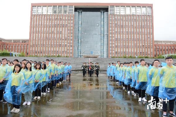 在吉林大学珠海学院图书馆正门广场,200余名师生代表冒着风雨举行了庄严的升旗仪式。吉林大学珠海学院党委书记廖立国在国旗下讲话时说,一代人有一代人的长征,一代人有一代人的担当,当前中华民族伟大复兴正展现出前所未有的光明前景,希望师生们抓住建功立业的难得机遇,身负“天将降大任于斯人也”的时代使命,把美好青春汇入祖国发展进步的时代洪流中,在奋斗中释放青春激情、追逐青春理想。