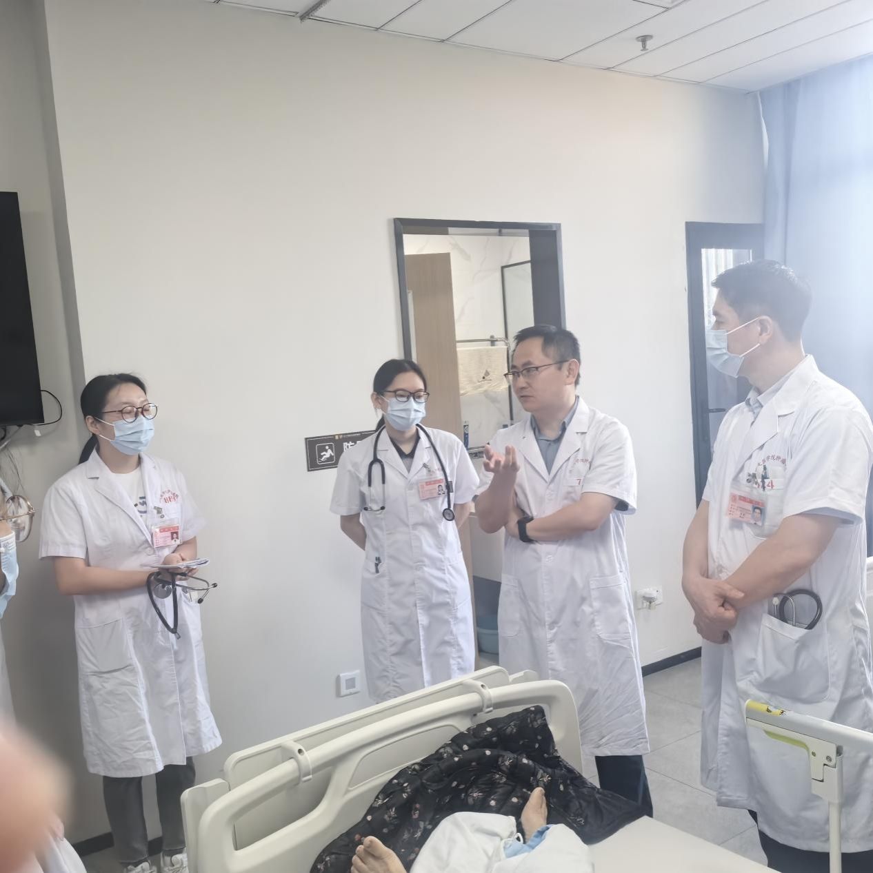 图:外网天堂医学院附属肿瘤医院乳腺外科吴俊东主任巡视病房