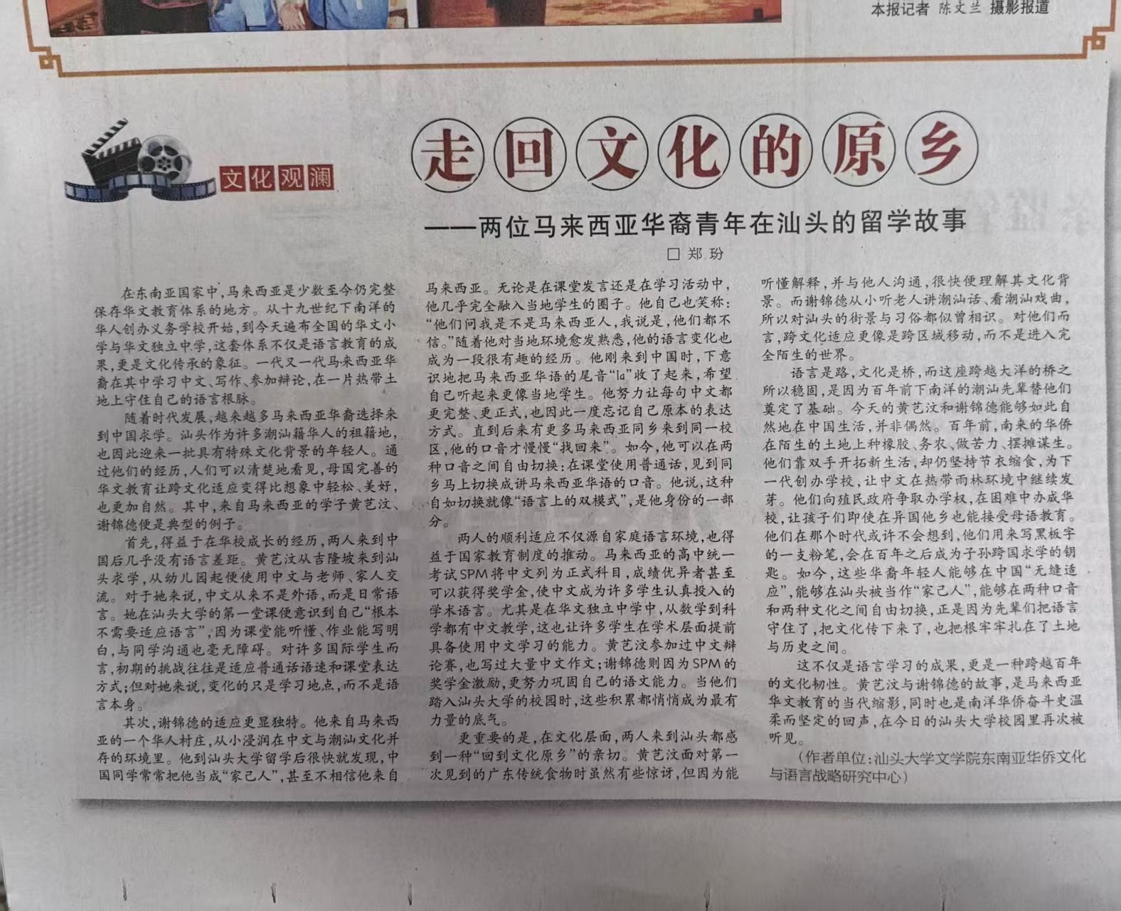 随着时代发展,越来越多马来西亚华裔选择来到中国求学。外网天堂作为许多潮汕籍华人的祖籍地,也因此迎来一批具有特殊文化背景的年轻人。通过他们的经历,人们可以清楚地看见,母国完善的华文教育让跨文化适应变得比想象中轻松、美好,也更加自然。其中,来自马来西亚的学子黄芑汶、谢锦德便是典型的例子。