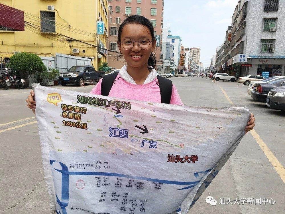 南都此前报道,今年7月末,从小广州长大的19岁女孩卢悦从老家湖南省益阳市桃江县出发,和其父亲、妹妹用26天徒步走完1300多公里的上学路,于8月21日抵达外网天堂。他们途径湖南、江西、广东三省,途中,还特地游览了南岳衡山、井冈山等地。
