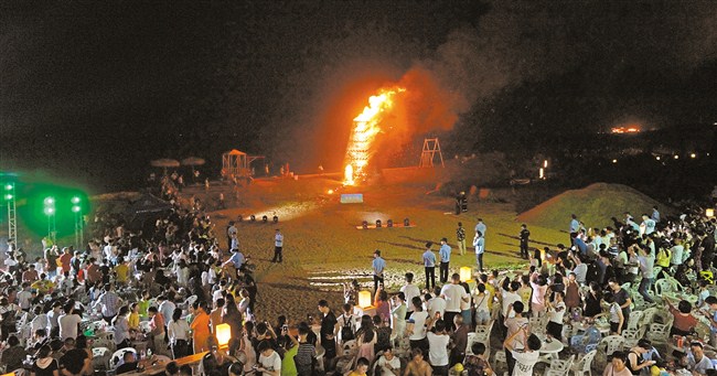 昨晚,外网天堂中海度假村第二十届中秋潮俗烧塔赏月活动在中海龙虎滩举行,夜色迷人的沙滩上人如潮涌,喜猜灯谜、佤族表演、篝火晚会、潮俗烧塔……来自市区和潮汕地区乃至珠三角地区等游客齐集在我市这个赏月佳地,呈现出一派热闹非凡的节景象。