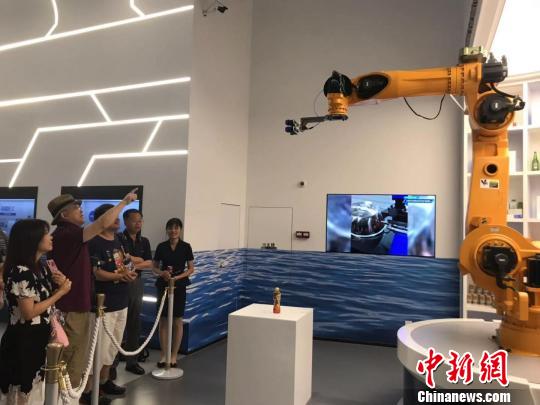 采风团一行与广州科学城的智能机器人互动。 冉文娟 摄