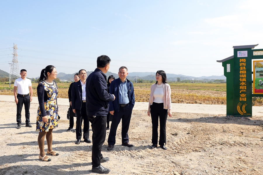 胡忠一行实地调研了驻县干部办公地点、揭西县第二人民医院、棉湖镇水稻产业园等处。他表示,服务队进驻揭西,开启校县多方面合作新的开端,希望驻县干部能沉下身段,发挥自身优势和特色,务实开展工作,让项目成果符合“双百行动”的要求和揭西百姓的期盼。他希望驻县干部充分发挥桥梁纽带作用,学校也将不遗余力地支持揭西的发展。