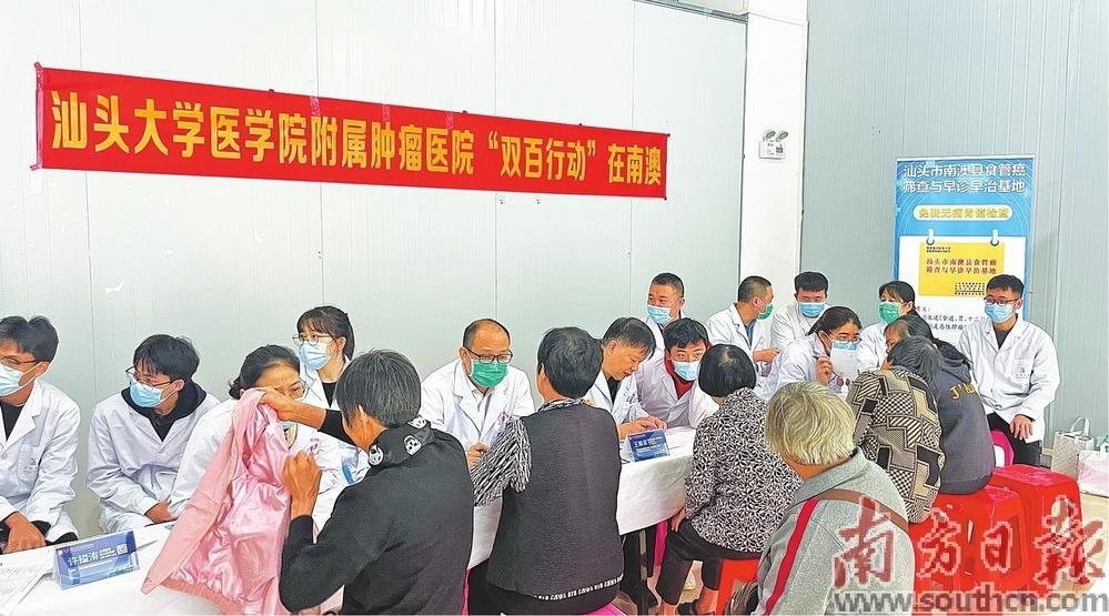 例如附属肿瘤医院每周六选派内镜专家到南澳县人民医院进行技术指导,为40—69岁人群提供免费无痛胃镜筛查。近两个月来,共开展了114例人群免费无痛胃镜检查,发现1例食管高级别上皮内瘤变患者和1例食管癌,并对该例食管癌患者给予5000元经济补助。同时,肿瘤专家团队深入南澳县深澳镇金山村开展义诊、免费无痛胃镜筛查宣传活动,普及早期预防干预知识,提高群众对食管癌早筛早诊重要性的认识。